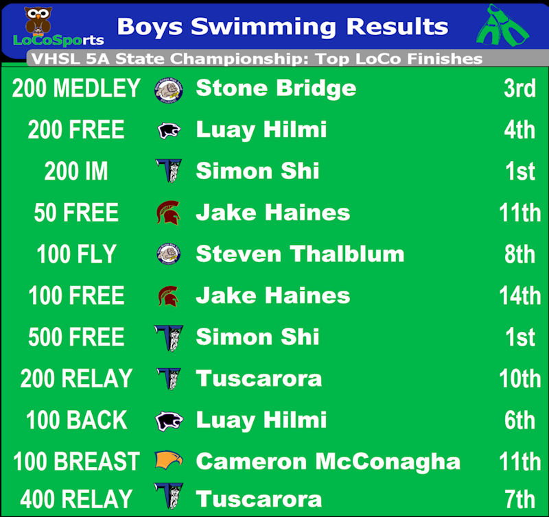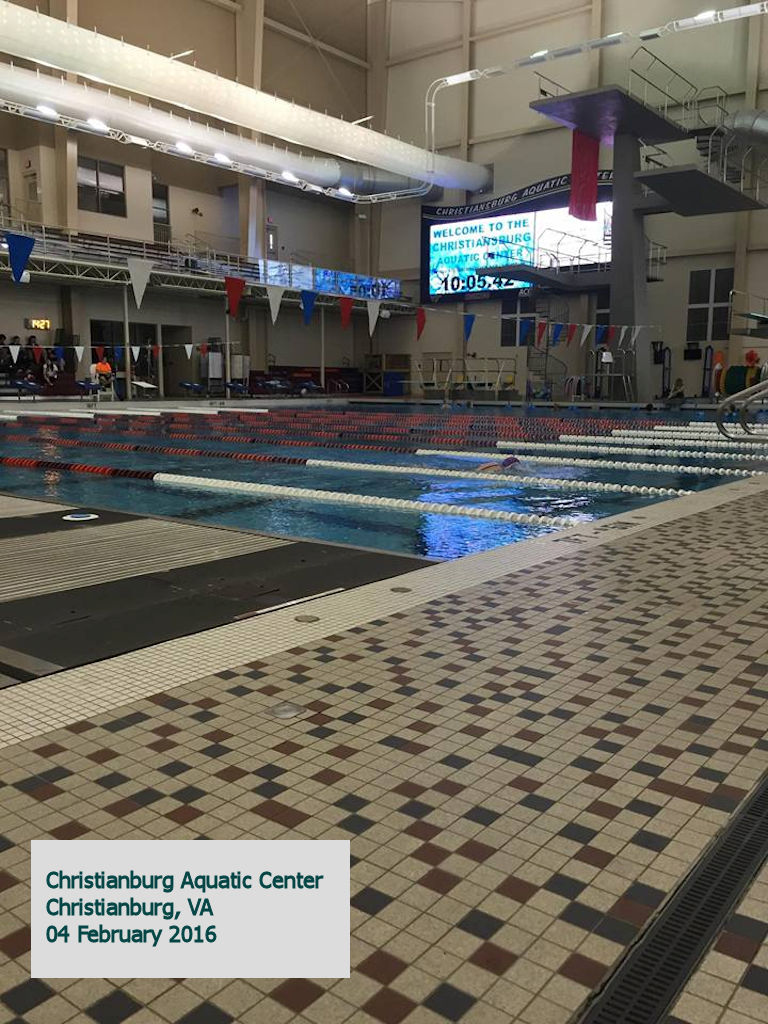 The Tuscarora High School Swim Team participated in the Virginia High School League (VHSL) 5A Northern Regional Swim Meet on the fourth of February. The meet was held at the Christianburg Aquatic Center in Christianburg, Virgina, which is about a four hour ride from here in Leesburg. Why the North Regionals were held in the far Southwest corner of the commonwealth remains a mystery. But all turned out well in the end since the Varsity Relay Team, which includes Owen, had times that were good enough to be invited to the VHSL 5A Swim and Dive Championships at George Mason University’s Jim McKay Natatorium, which is 30 miles or so from Leesburg.