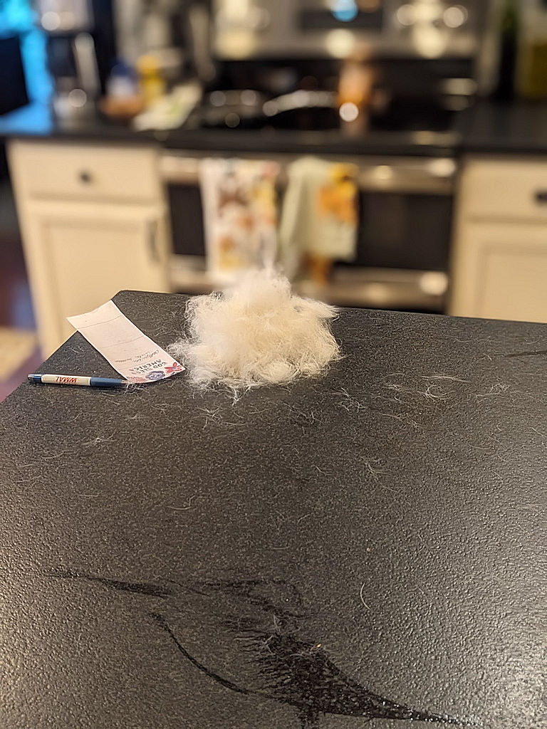 Cosmo had a landslide win in the annual defurminator contest. Winnie was once more a very distant second.
