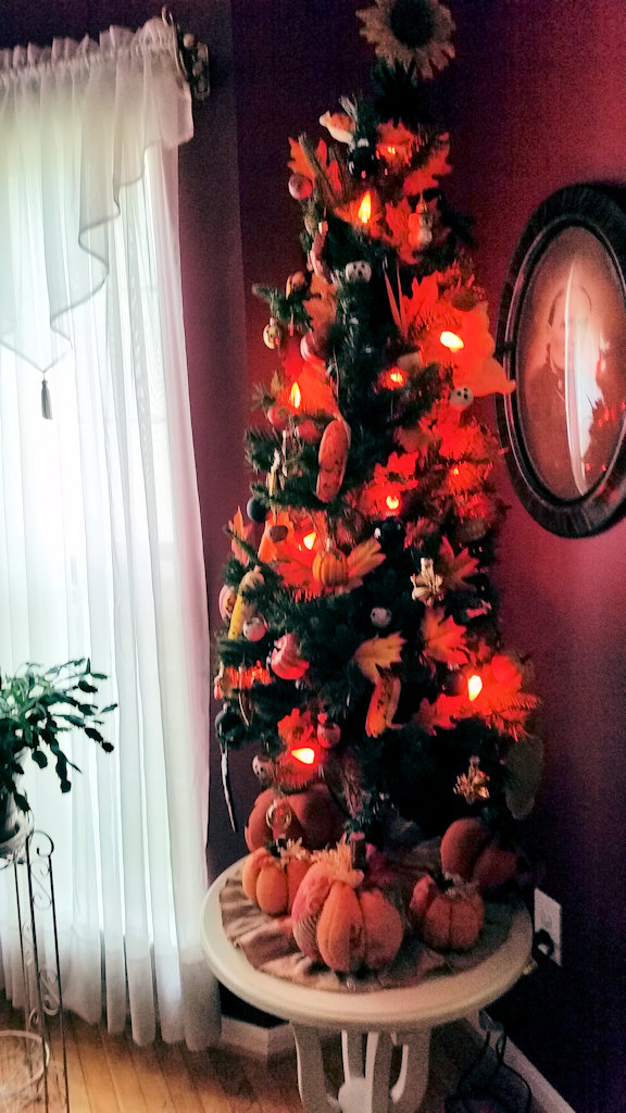Fall is officially here. We closed down the pool this month. Another clue that Summer is gone is the autumnal decorations that Mom has put up around the house. We even have an “Autumnal Tree” in the corner of the dining room.