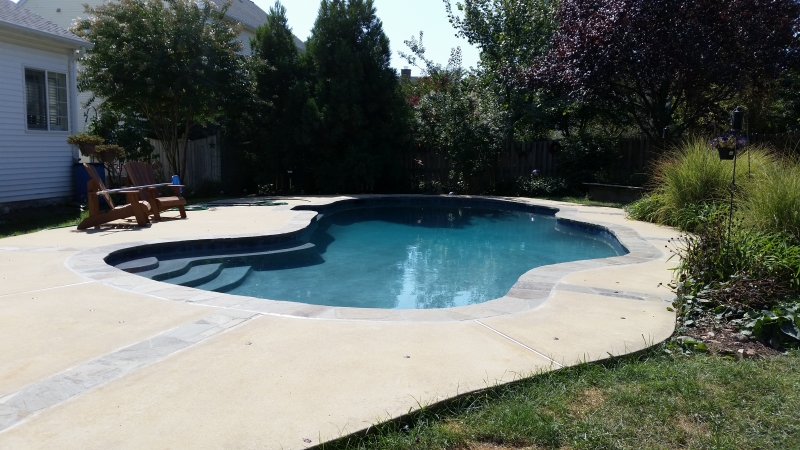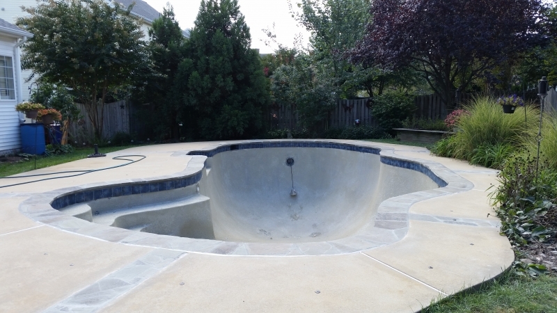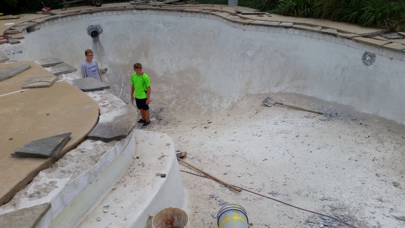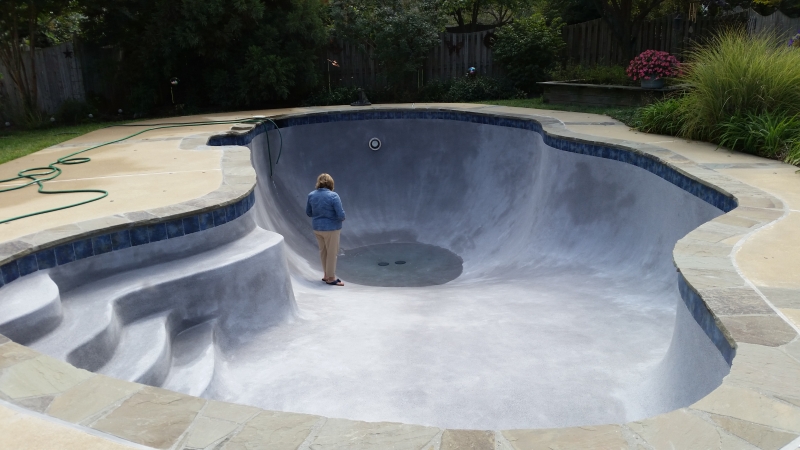 Slate and tile done, pool ready for final plaster.