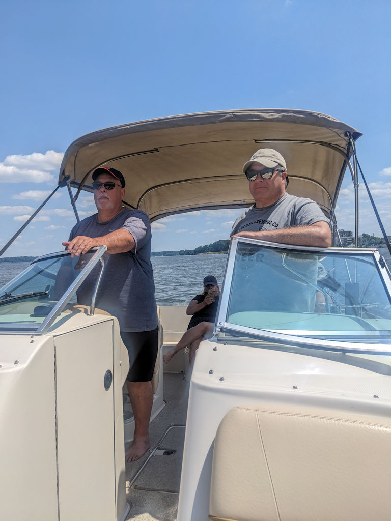 Captain Rob and First Mate Dan took a cruise on the Potomac, along with passengers Mom, Tanya and Pop-Pop.